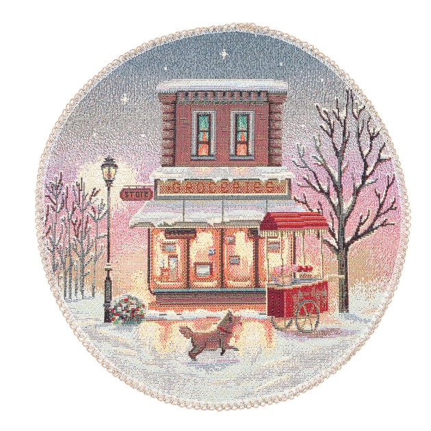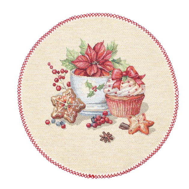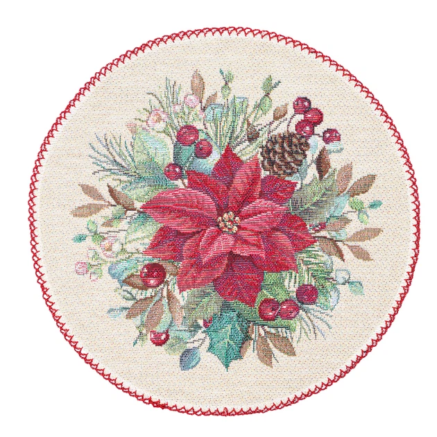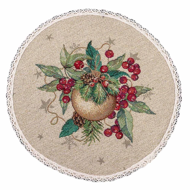 Серветка-підкладка новорічна гобеленова "Різдвяна класика" (срібний люрекс) (ROUND1391NA-25D)