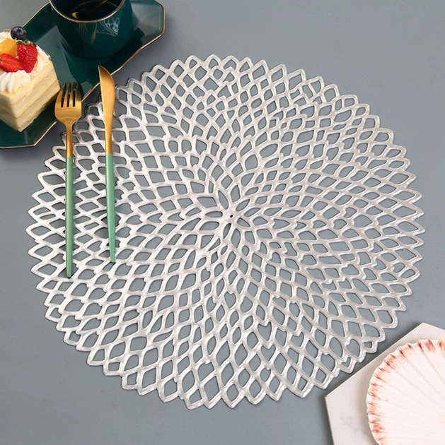 Серветка сервірувальна з малюнком кругла 38 см Срібляста (7886)