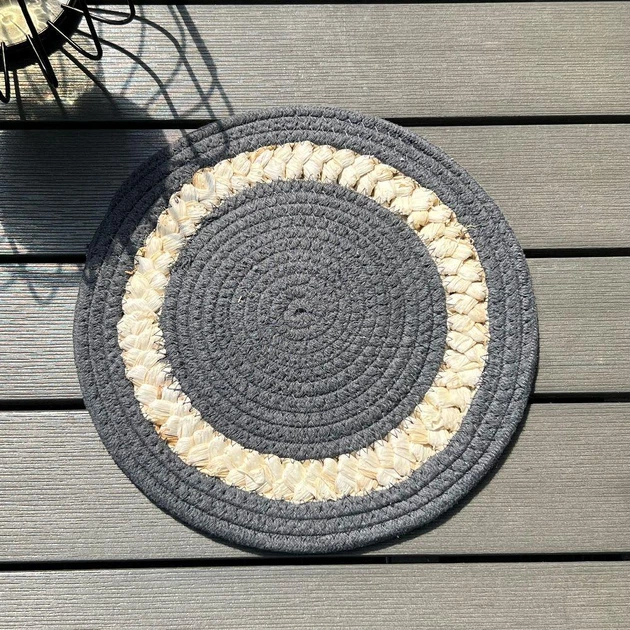 Кругла сервірувальна салфетка з тканини гравітова та кукурудзи 30см