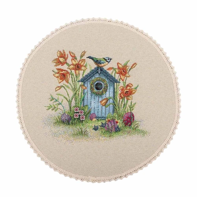 Серветка гобеленова Limaso ROUND1016M-25D Пасхальні мотиви з мереживом 25 см