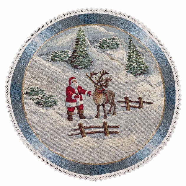 Серветка-підкладка кругла новорічна гобеленова "Різдво в Карпатах" (золотий люрекс) 25 (ROUND723M-25D)