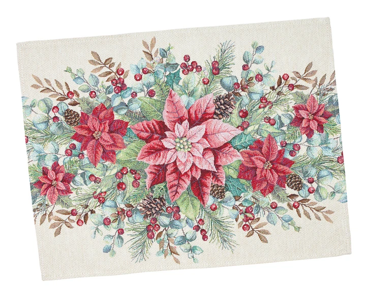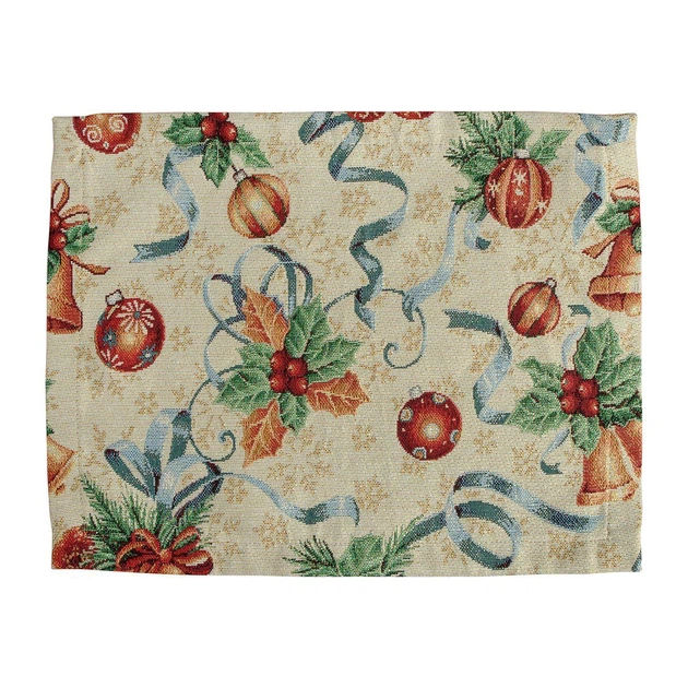 Серветка-підкладка новорічна гобеленова "Різдвяна класика" (срібний люрекс) (RUNNER1391NA-49)