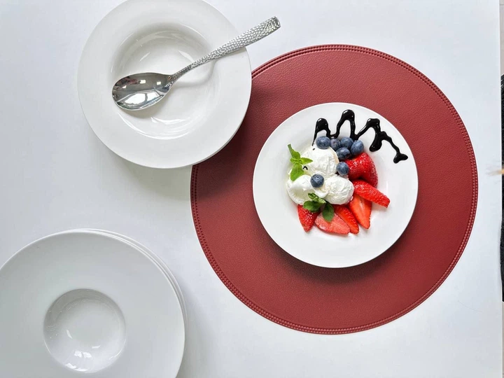 Серветка під тарілку підтарильник PU шкіра 38 см "Панкейк" кругла бордова для дому та ресторану