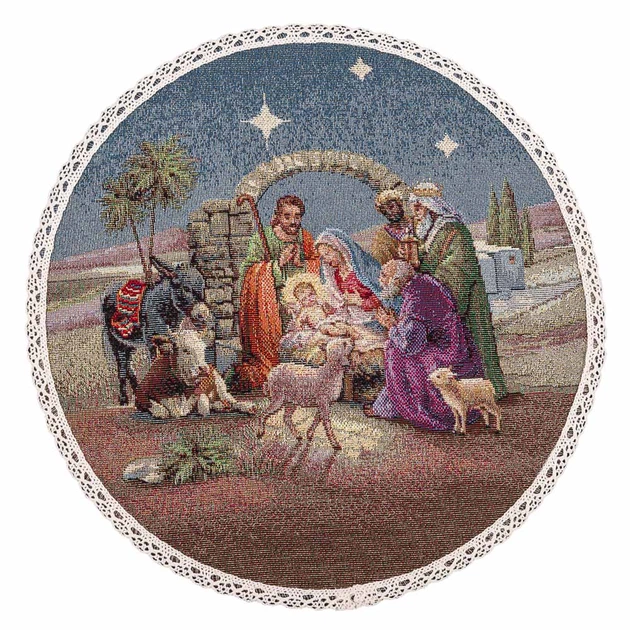 Серветка різдвяна гобеленова "Віфлеємська ніч" (золотий люрекс) 30 (ROUND1153AZM-30D)