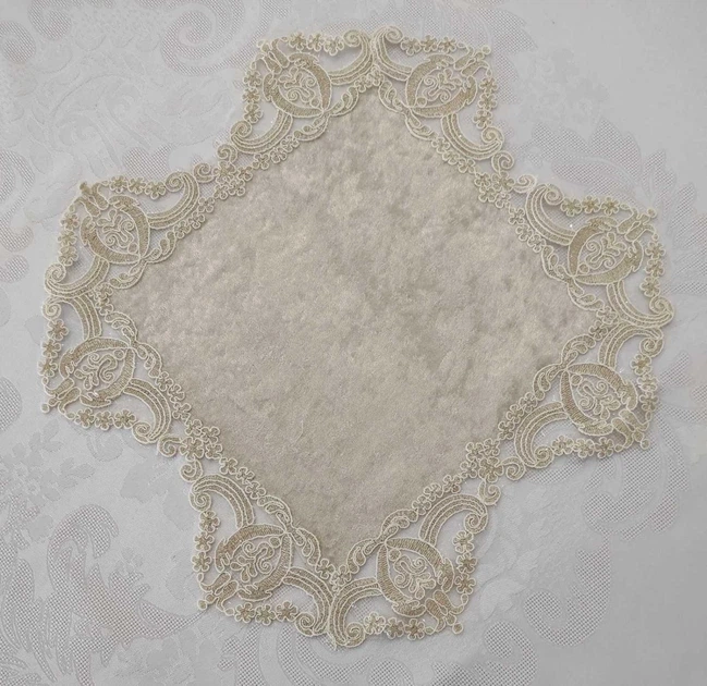 Серветка велюрова Acme з мереживом 45*45 Cinar Krem