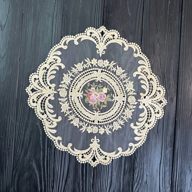 Мереживна серветка з вишивкою для сервірування декор столу колір бежевий квітковий принт
