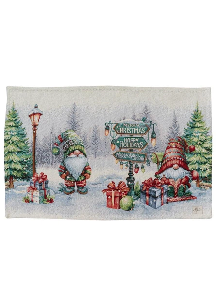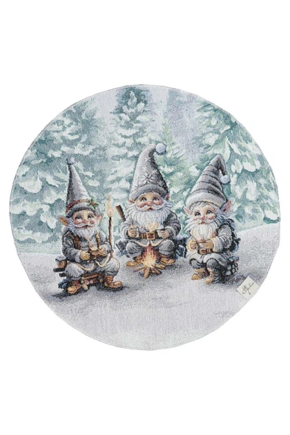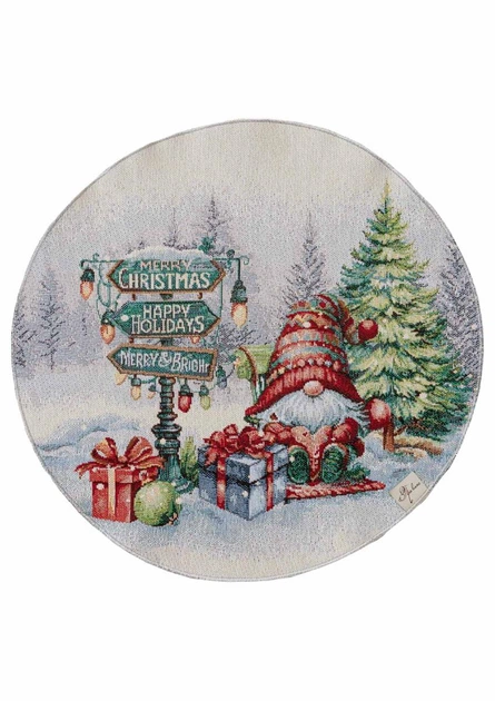 Новорічна кругла гобеленова серветка ПРОВАНС Казкові гноми, D35см 038429