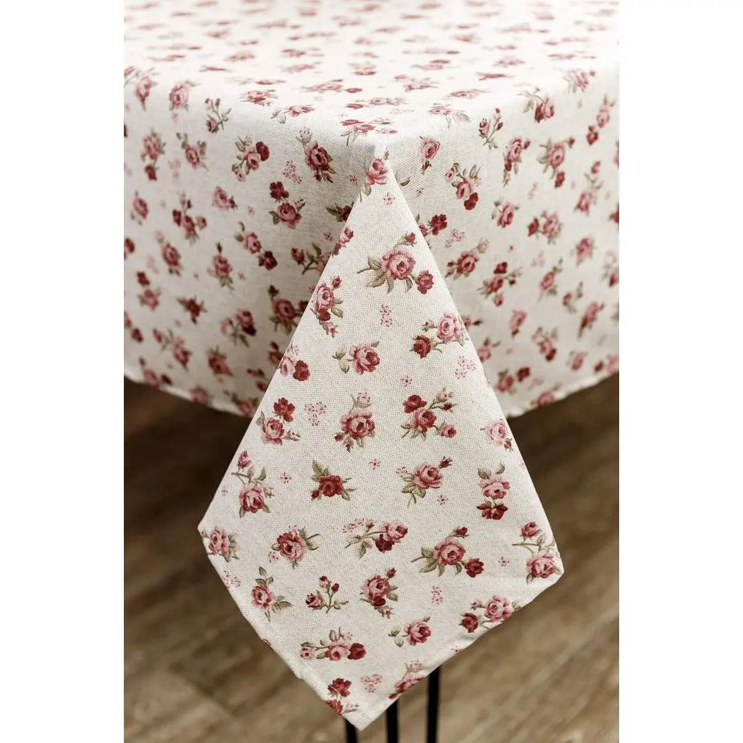 Скатертина Прованс Simfoni Червоні трояндочки 220x136 см біла (33591)