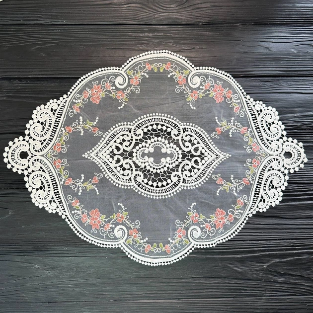Мереживна серветка для сервірування декор столу з вишивкою колір бежевий квітковий принт фігурна