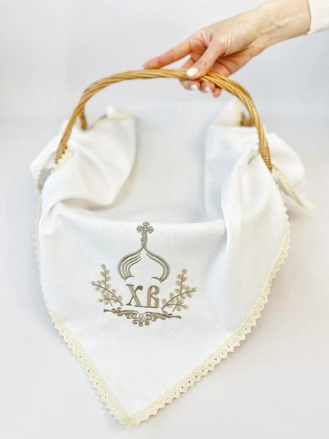 Ошатна серветка до Великодня Family Tradition дак з вишивкою 60х60 см біла Воскресіння Христове