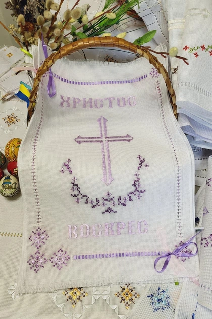 Серветка-рушник на великодній кошик з ручною вишивкою 320х480мм біла Арт-054фіол