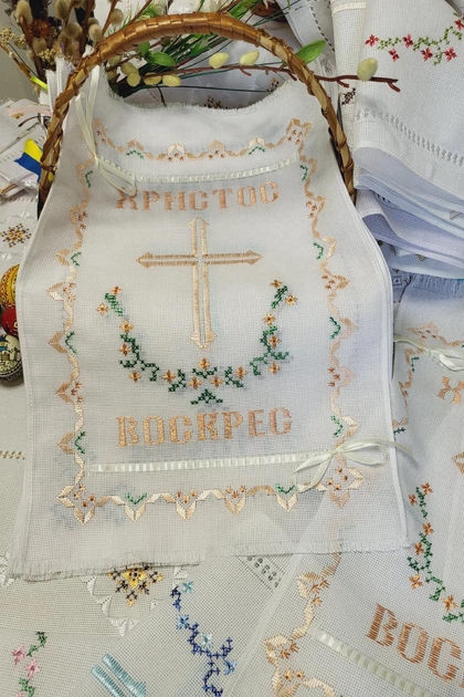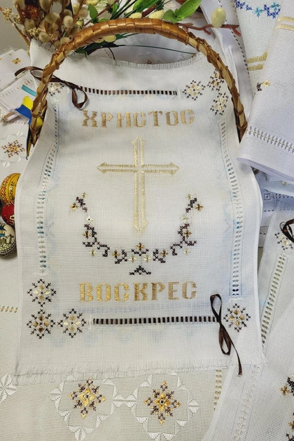 Серветка-рушник на великодній кошик з ручною вишивкою 320х480мм біла Арт-054кор