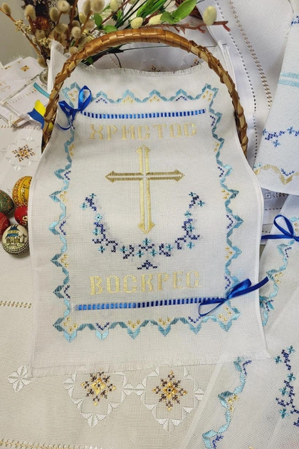Серветка-рушник на великодній кошик з ручною вишивкою 320х480мм біла Арт-053лазур
