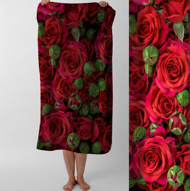 Рушник З червоними трояндами квіти букет 3 банний пляжний 70х150 см