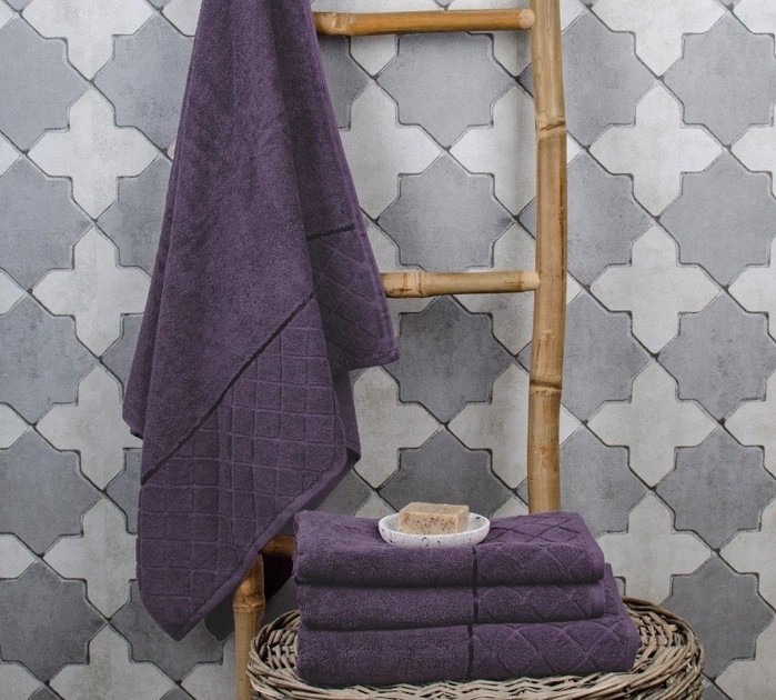Махровий рушник Аїша. Жаккард Ромби темно-фіолетового кольору-50х90