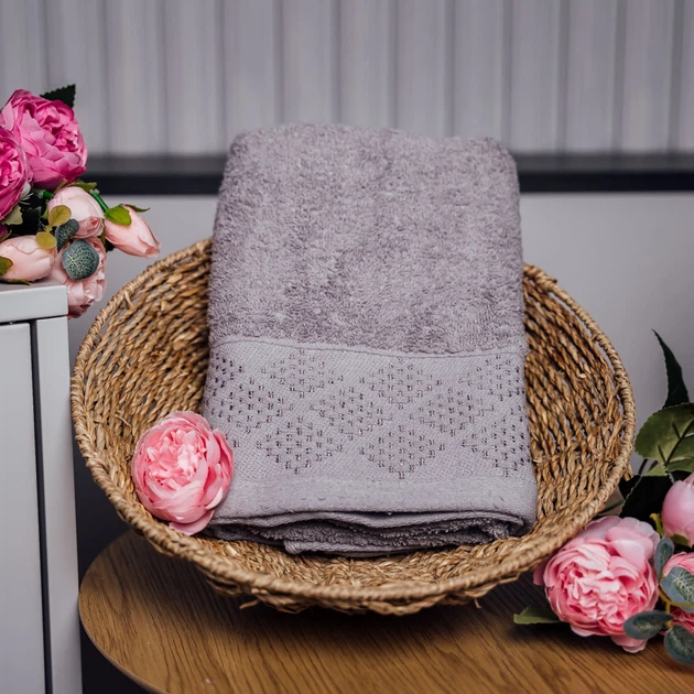 Рушники банні Затишний орнамент 140*70 см Світло-сірий 87707
