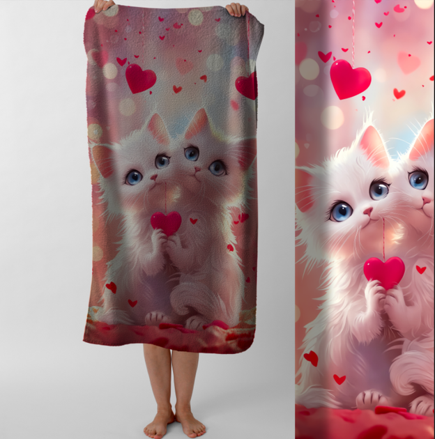 Рушник Валентинка білі кошенята з серцями мульт банний пляжний 70х150 см