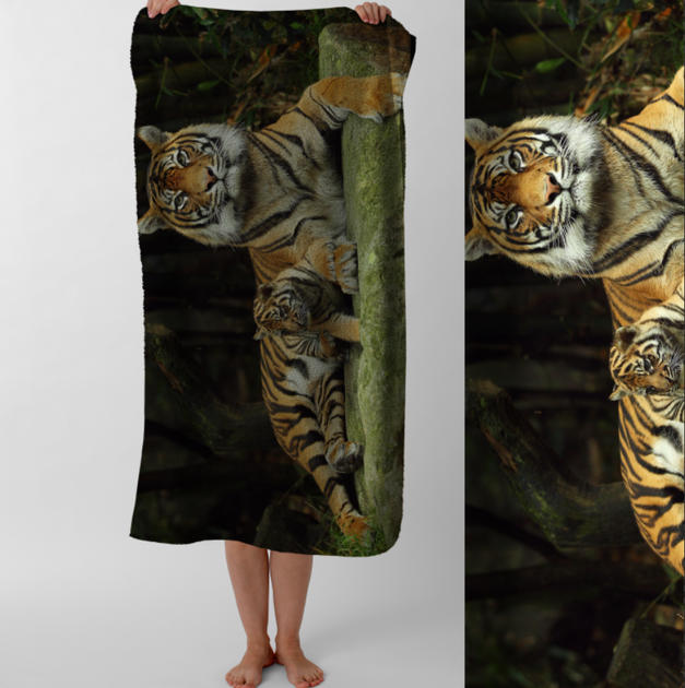 Рушник Тигриця з маленьким тигренятком банний пляжний 70х150 см