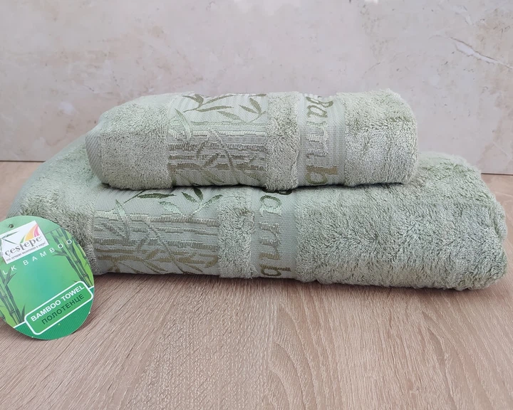 Набір турецьких бамбукових махрових рушників Cestepe 50х90+70х140 Bamboo Zumrut Light Green