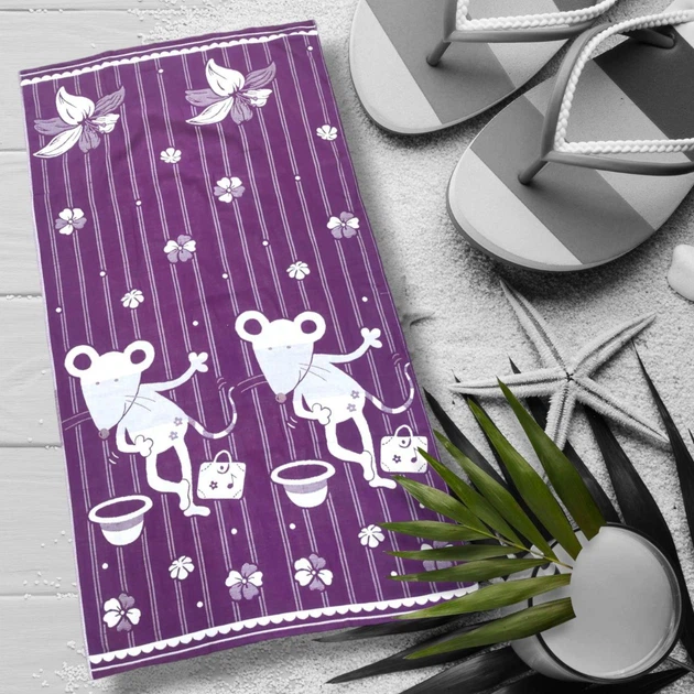 Рушник банний і для пляжу з льону 70х140 "Мишеня та капелюх" - 1шт Фіолетовий