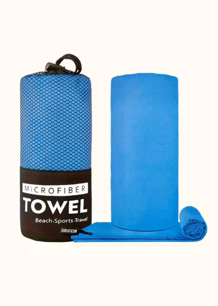 Спортивний рушник з мікрофібри з чохлом для залу, йоги, пляжу, басейну 110*50 см Блакитний (8006)