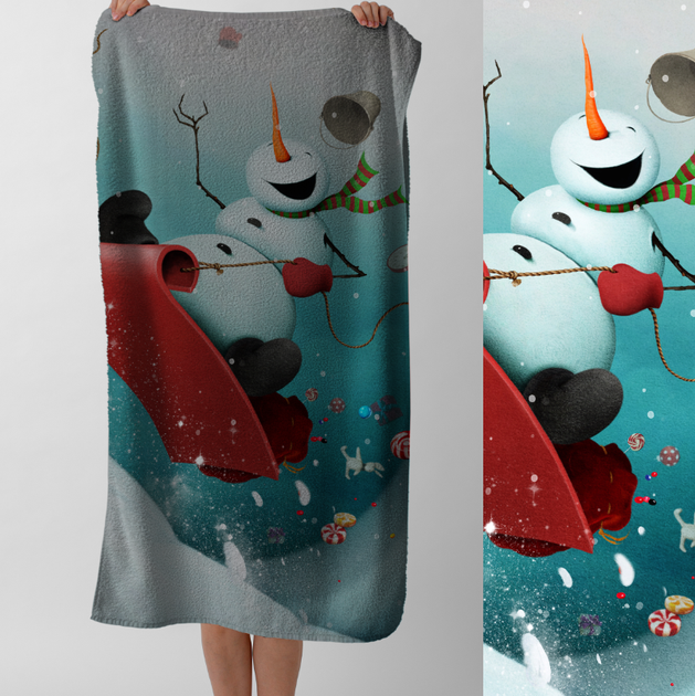 Рушник Новорічний різдвяний мульт сніговик 4 банний пляжний 70х150 см