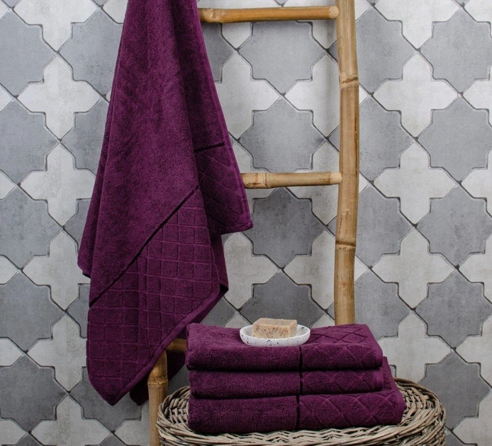 Махровий рушник Аїша. Жаккард Ромби винного кольору-50х90