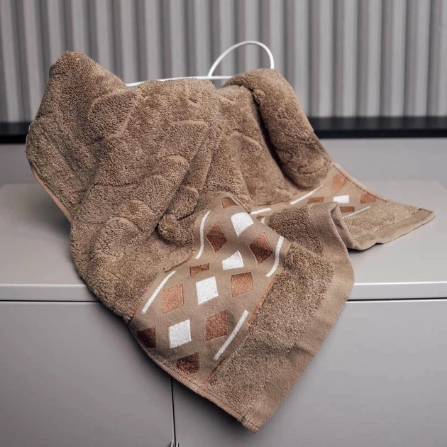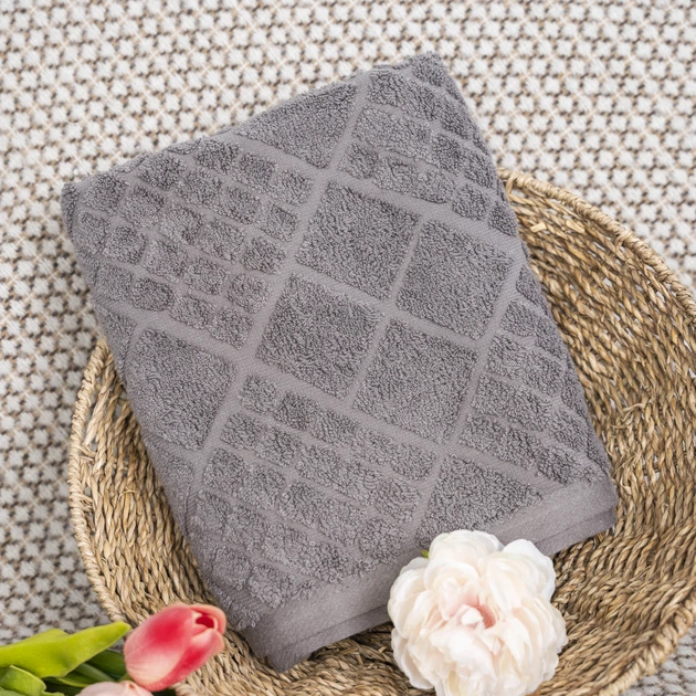 Банні рушники з ромбами 140*70 см Темно-сірий 88978