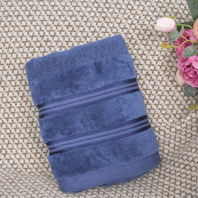 Банні рушники з тисненням в смужку 140*70 см Синя Хвиля 88979