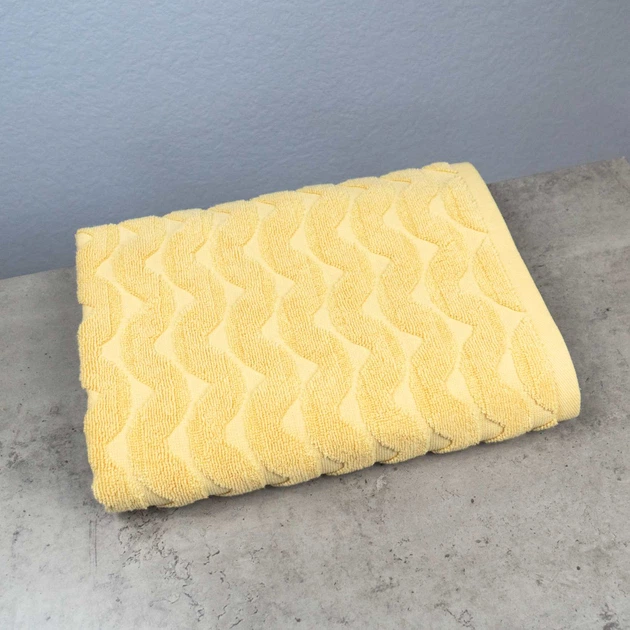 Махровий рушник для обличчя та рук Жакардовий Хвиля GM Textile 50х90см 500г/м2 (Жовтий)