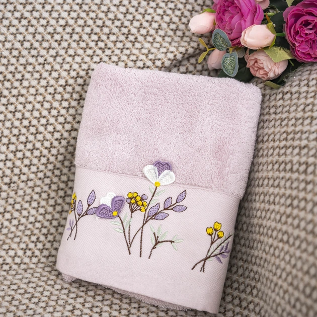 Банні рушники зі світлими квітами 140*70 см Лавандовий 88961