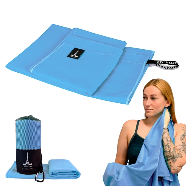 Дорожній спортивний рушник Love You з мікрофібри з чохлом Блакитний 50х90