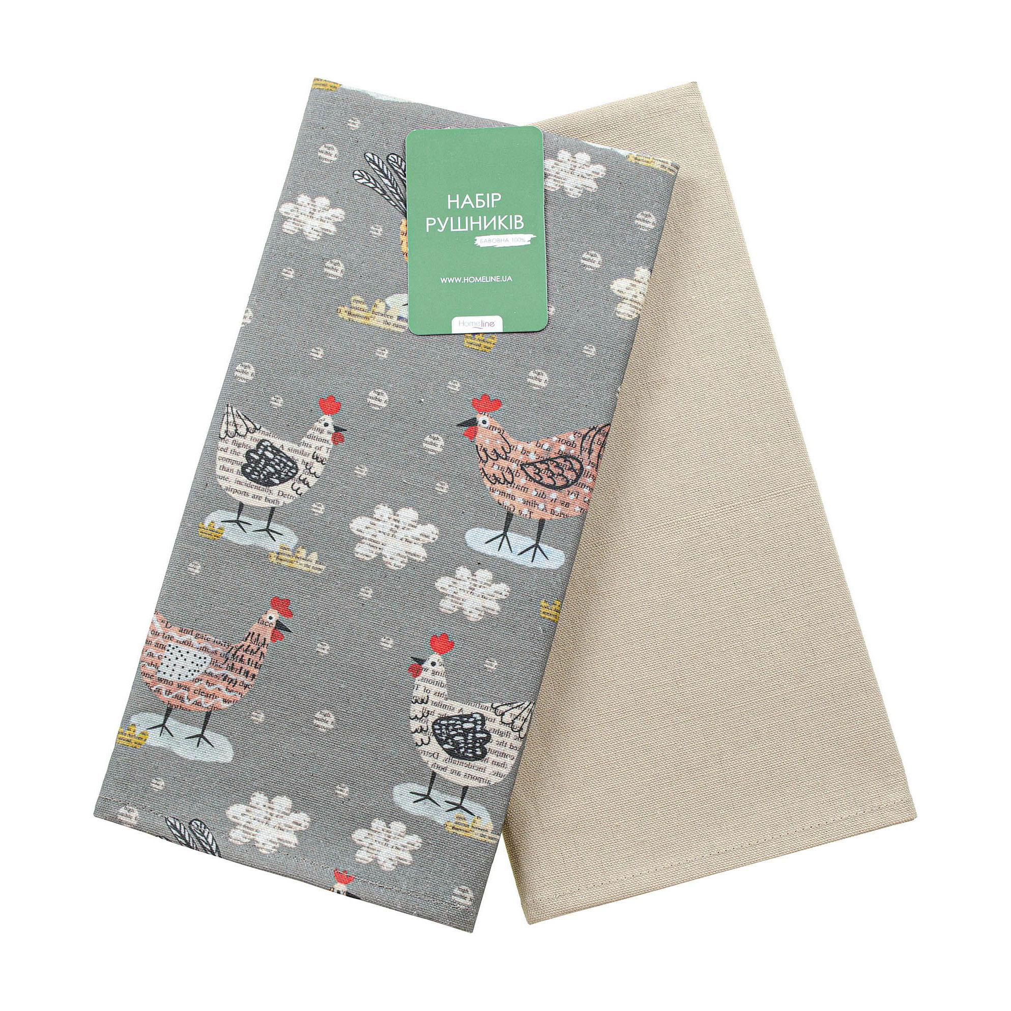 Набір кухонних рушників вафельних Home Line Сhicken News, бежевий, напівпанама, 40*60 см, 2 шт (186718)