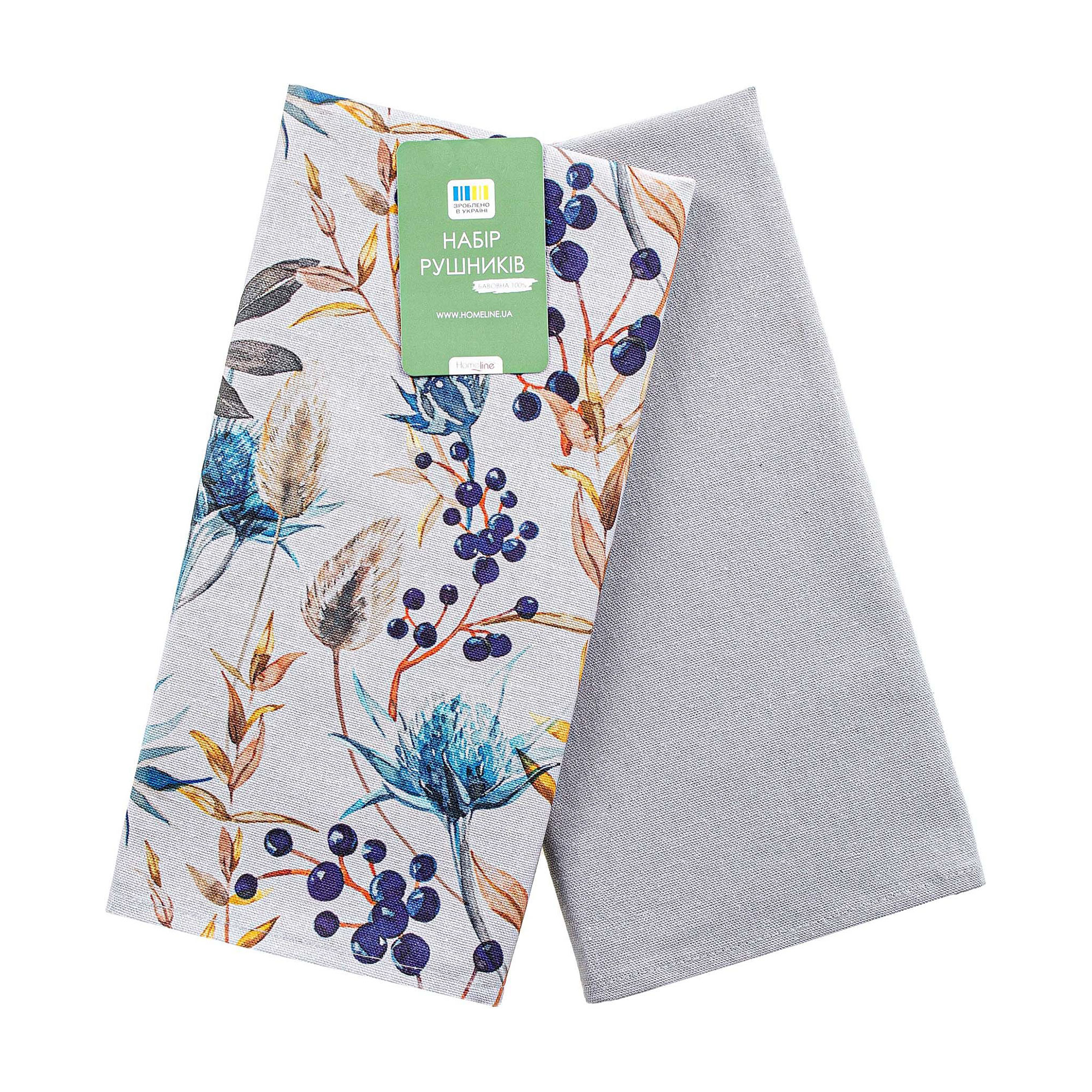 Набір кухонних рушників вафельних Home Line Декоративні квіти, графітово-фрезові, 45*60 см, 2 шт (183924)