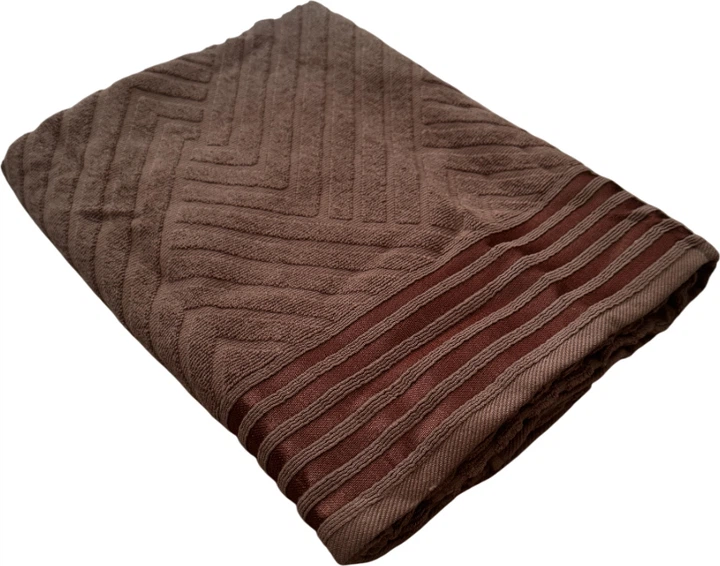 Рушник махровий TRComFor для ванної 70х140 см Тиснення Ялинка зі смужками темно-коричневий (TC303376049)