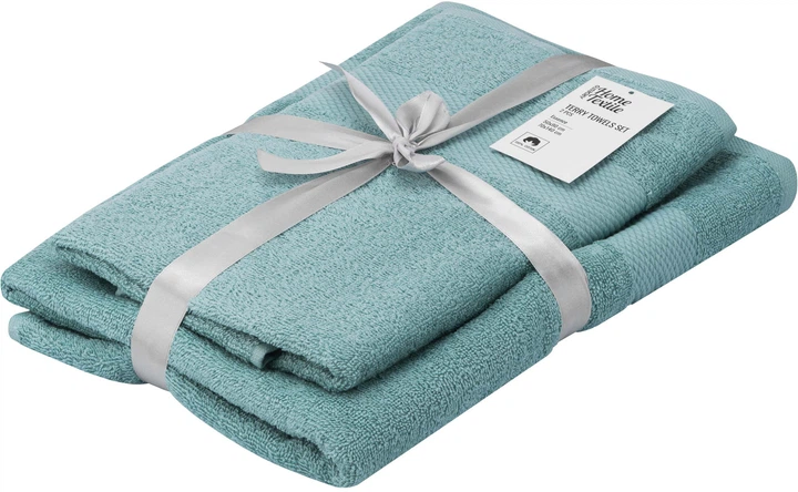 Набір 2 махрових рушники Ardesto Essence для ванної 70x140 + 50x90 см Аква (ART2358AQ)