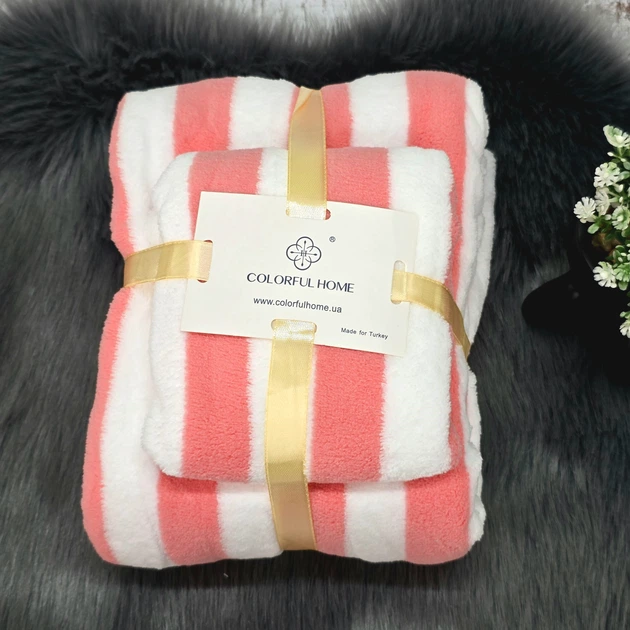 Набір рушників мікрофібра баня + кухня персиковий Широка смуга полоса