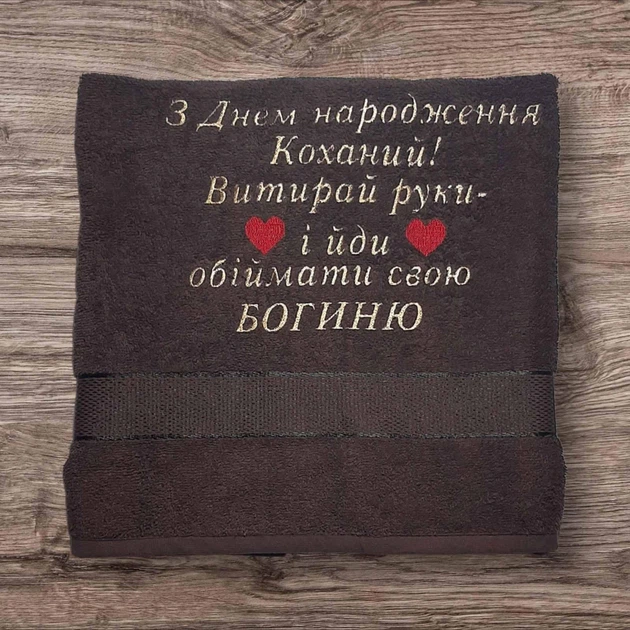 Махровий рушник із вишивкою «З Днем народження, Коханий» – подарунок Розмір 70*140 см