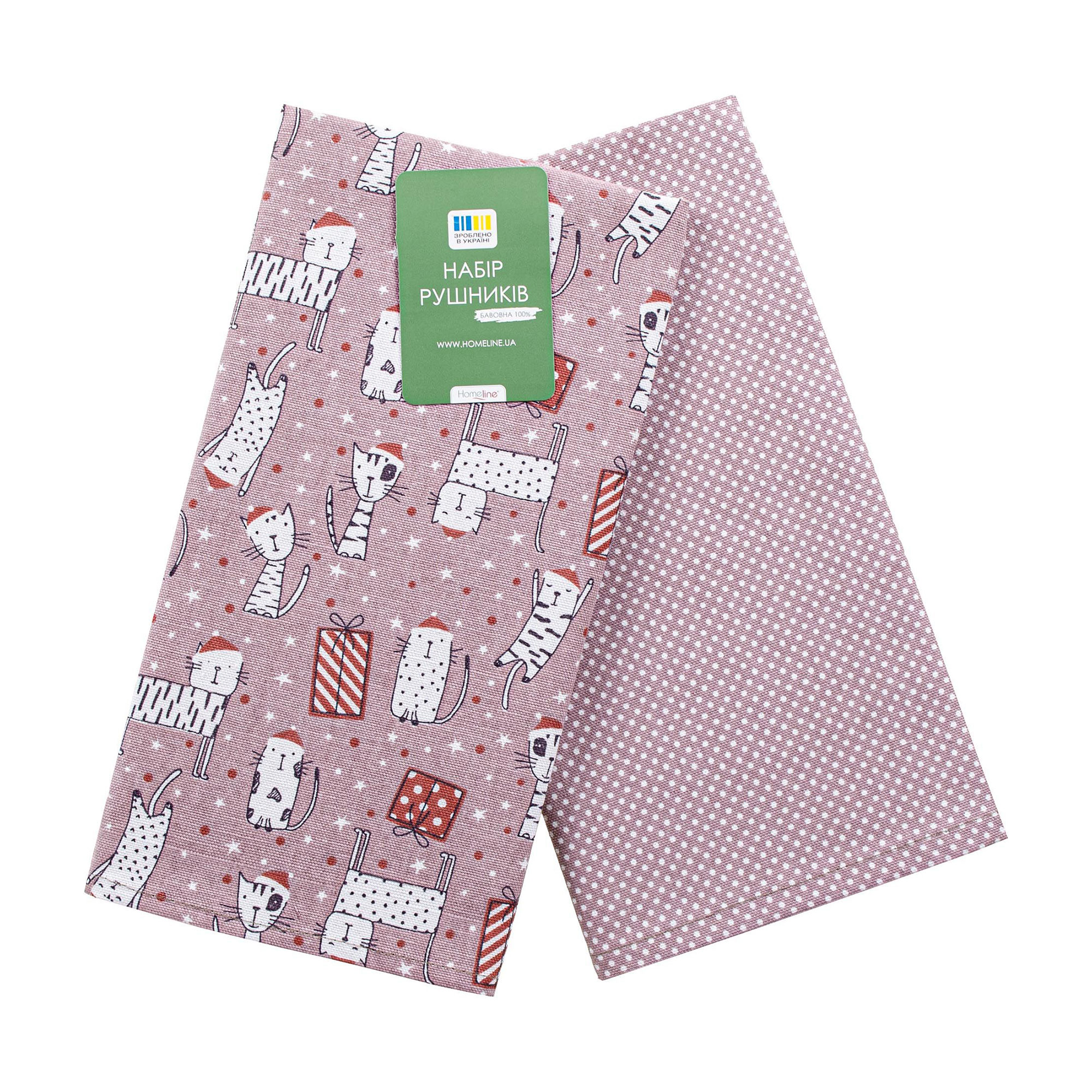 Набір кухонних рушників вафельних Home Line Святкові коти, сіро-фрезовий, напівпанама, 40*60 см, 2 шт (192703)