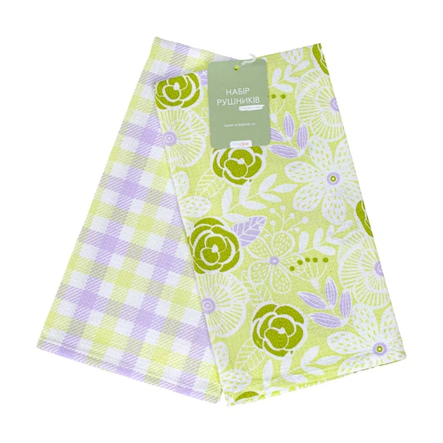 Набір вафельних рушників Home Line Квіти 169664 45*60 см салатовий 2 шт