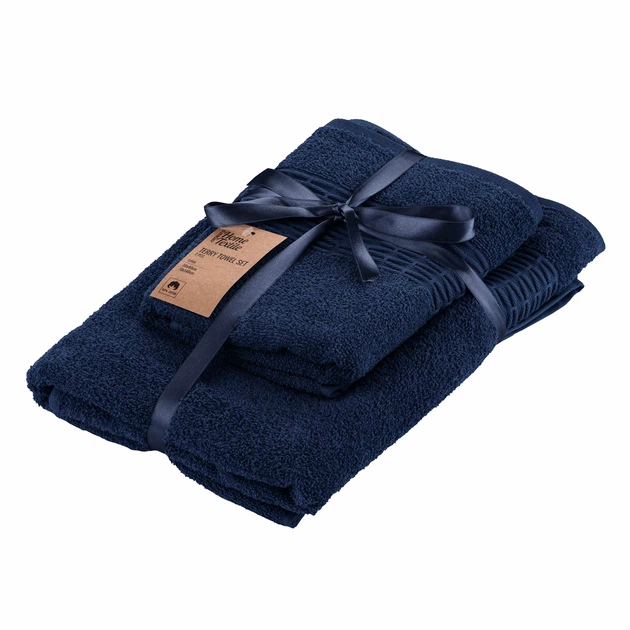Набір рушників махрових Ardesto Lotus 2 шт., 50х90см, 70х140см, 100 бавовна, синій ART2357NA