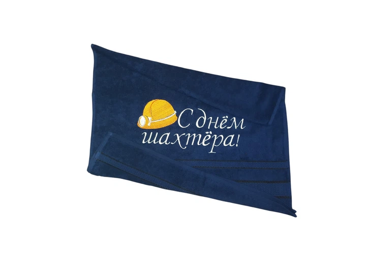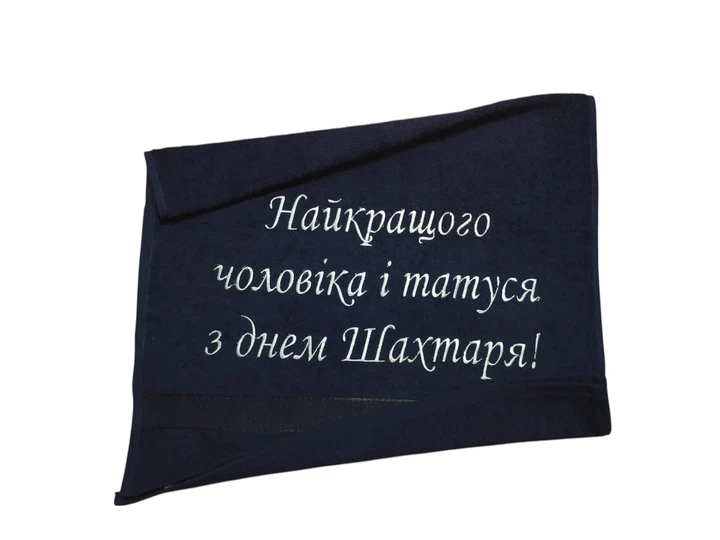 Рушник з вишивкою махровий для обличчя 50*90 темно - синій шахтарю гірнику 00399