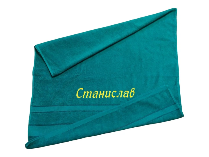 Рушник з іменною вишивкою махровий банний 70*140 бірюзовий Станіслав 03765-1
