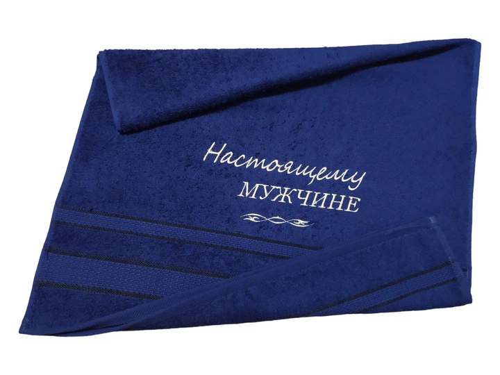 Рушник з вишивкою махровий банний 70*140 темно-синій справжньому чоловікові 10033