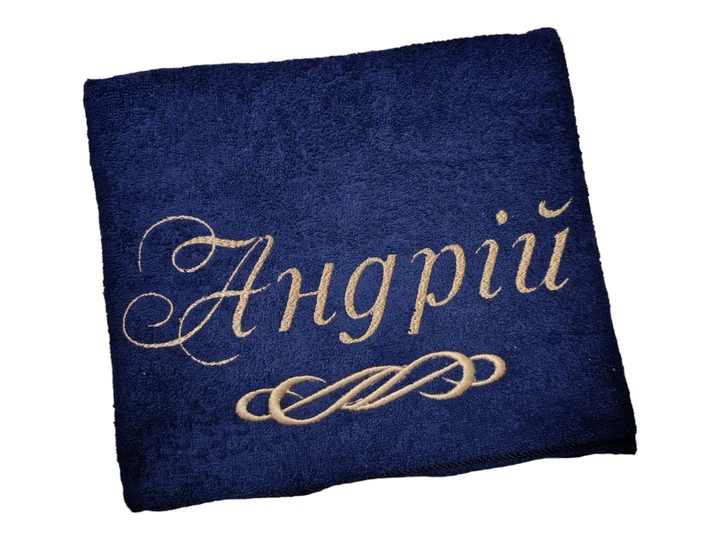 Рушник з іменною вишивкою махровий банний 70*140 темно - синій Андрій ukr 04253