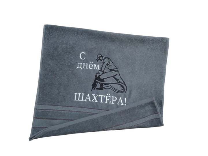 Рушник з вишивкою махровий для обличчя 50*90 сірий шахтарю гірнику 00401-1