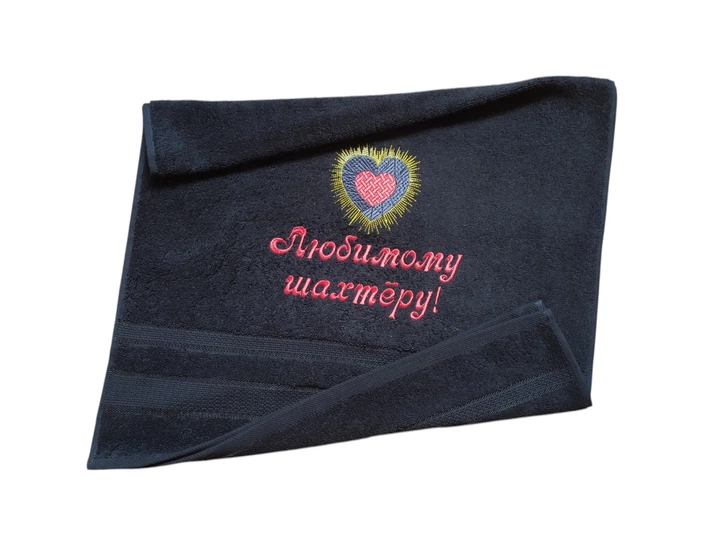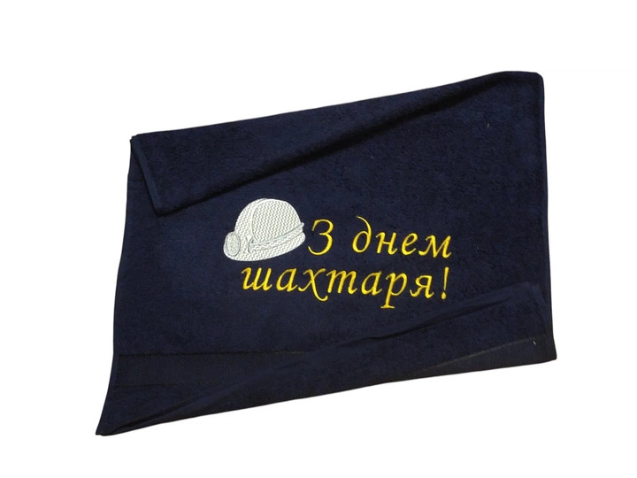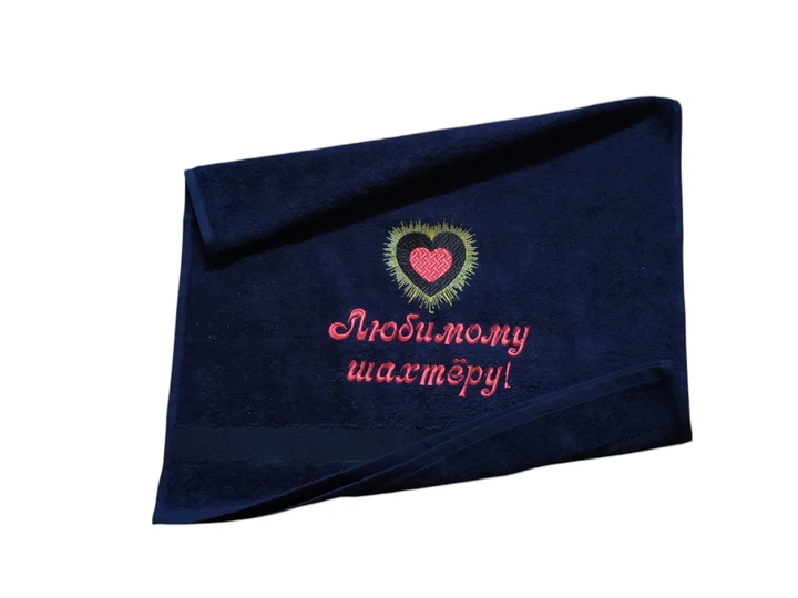 Рушник з вишивкою махровий для обличчя 50*90 темно - синій шахтарю гірнику 00416
