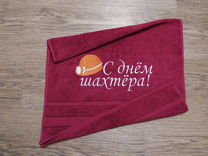 Рушник з вишивкою махровий для обличчя 50*90 бордовий шахтарю гірнику 00320