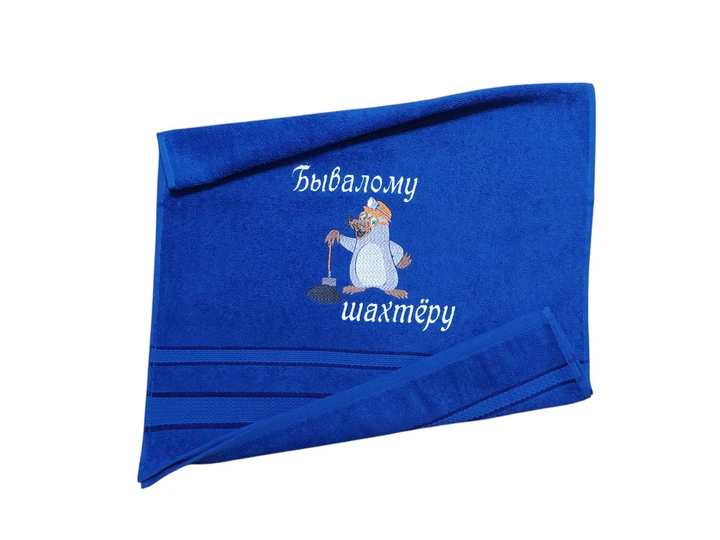 Рушник з вишивкою махровий для обличчя 50*90 синій шахтарю гірнику 00397