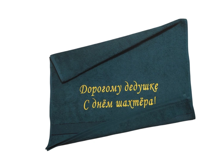 Рушник з вишивкою махровий для обличчя 50*90 зелений шахтарю гірнику 00329-2